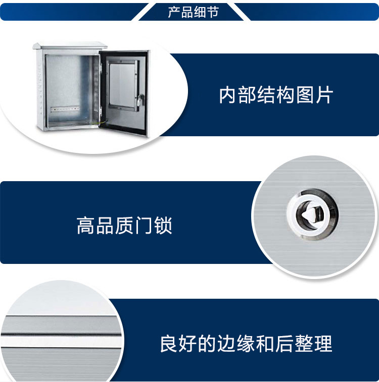 ?1、不銹鋼設(shè)備配電箱采用304不銹鋼板材及優(yōu)質(zhì)配件制造。南域為您展示電箱,配電箱,低壓配電箱的內(nèi)部結(jié)構(gòu),采用優(yōu)質(zhì)配件制造。 | ![]() |